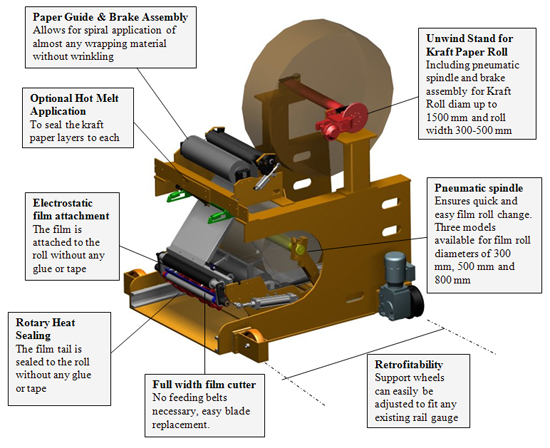 - Spiral application: One width wraps all roll sizes, no more need for multiple backstands